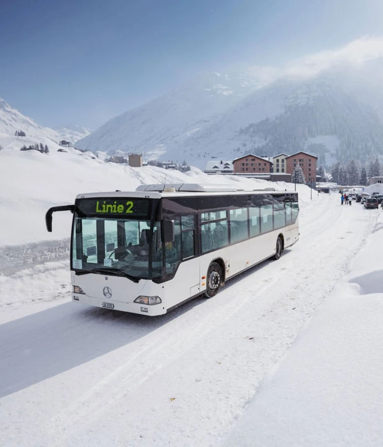 Use the E-Sport Bus for a stress-free journey to Andermatt’s ski resorts and cross-country trails