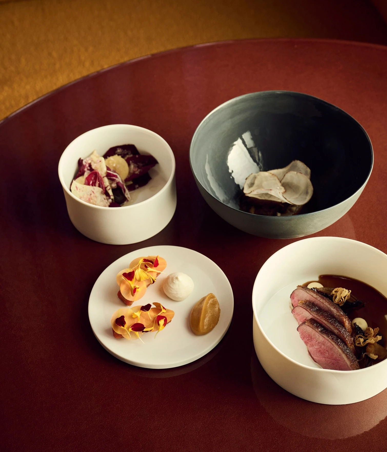 Meaning “nest” in Romansh, IGNIV offers imaginative dishes crafted for sharing in Patricia Urquiola’s elegant design. The experience begins with signature cocktails and amuse-bouches, followed by a series of exquisitely presented courses that celebrate creativity, seasonality, and conviviality.